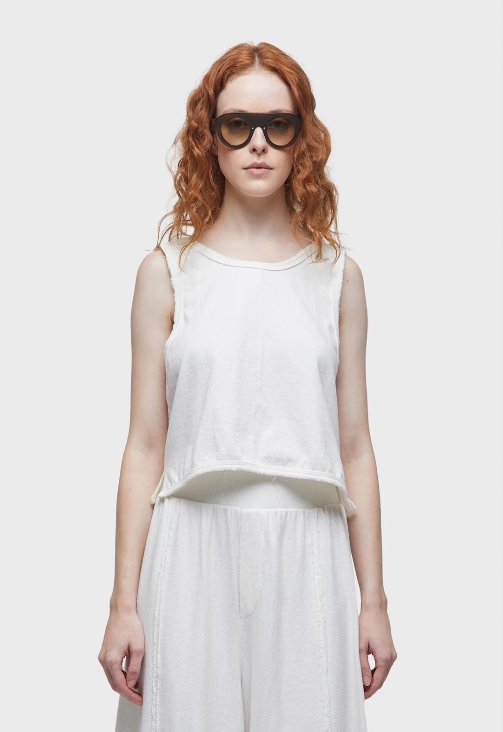 Com um design sem mangas e um decote "u" tanto na frente quanto nas costas, ele valoriza a silhueta de forma elegante. As cavas baixas e os ombros largos proporcionam um toque despojado, ideal para quem busca um visual contemporâneo e estiloso.